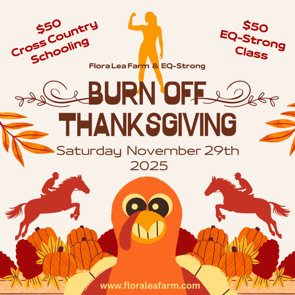 Join us for a chance to burn off the turkey on Saturday November 29th. EQ-Strong will be providing classes geared towards helping equestrians warm up riding muscles while building strength. Registration and payment for EQ- Strong classes must be completed in advance by 11/22.